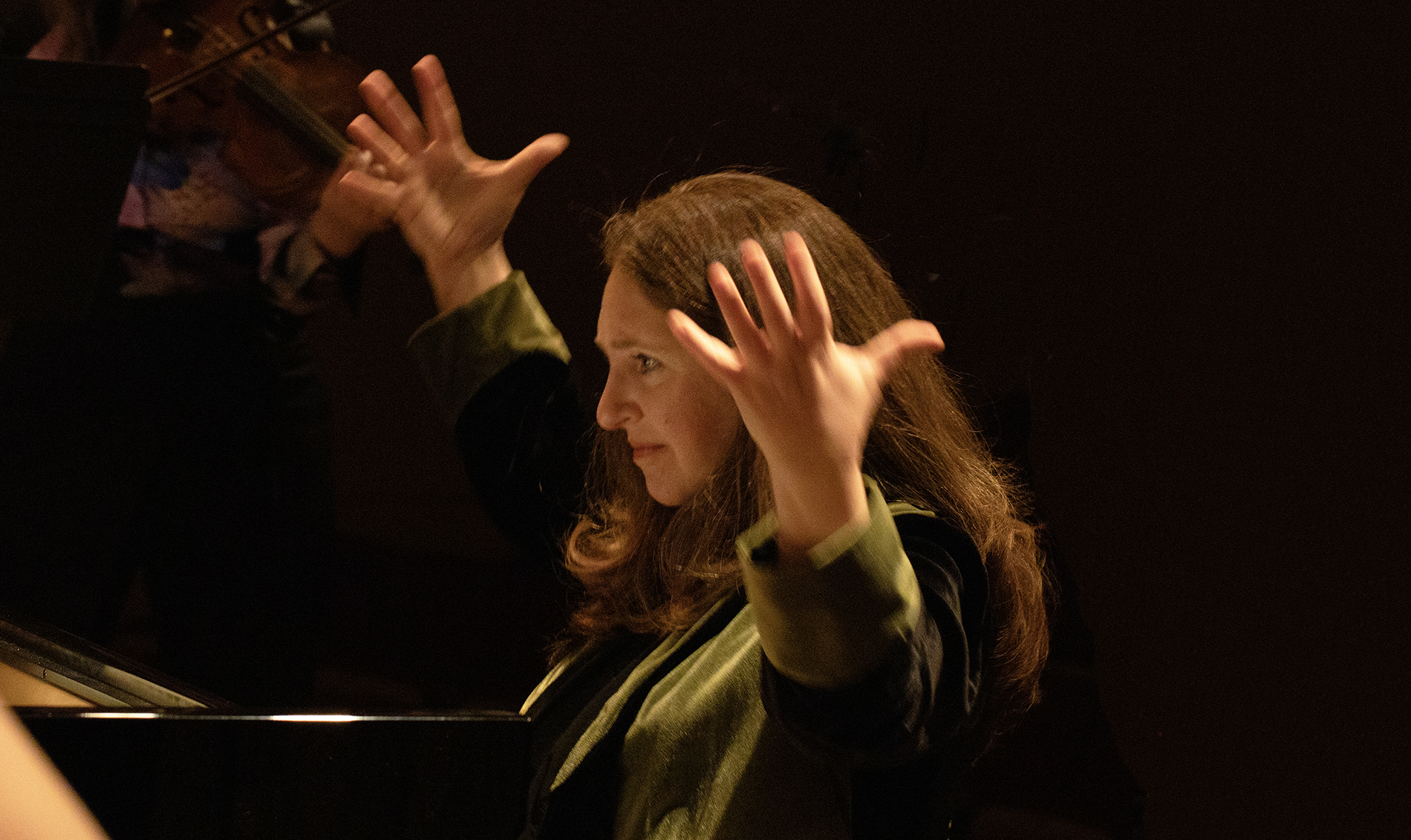 Simone Dinnerstein conducting Baroklyn from the piano. Photo by Grayson Dantzic